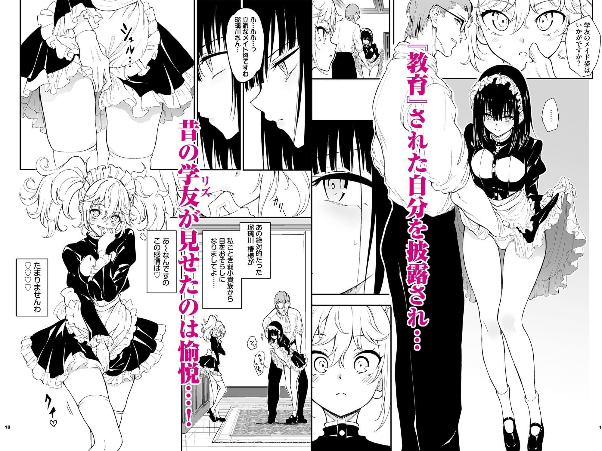 ポイマン卿から貴族へ返り咲くことを提案されるも、自らメイドとして仕えることを選んだ瑠璃川 椿。激しい『教育』を施されていても、彼女の心はポイマンに屈することはなかった。そんな瑠璃川を自らの伴侶としたいポイマンが打った策…、それは瑠璃川の過去を知る下級貴族の令嬢・清華 リズを屋敷に迎え入れること─。旧友リズの前で、犯●れ耐える瑠璃川だったが、次第に声が漏れはじめてしまう。そんな姿にリズは優越感と興奮を覚えて…!? 瑠璃川、リズ、ポイマン…各々の思惑が交錯する、メイド教育『新章』が今始まる─。