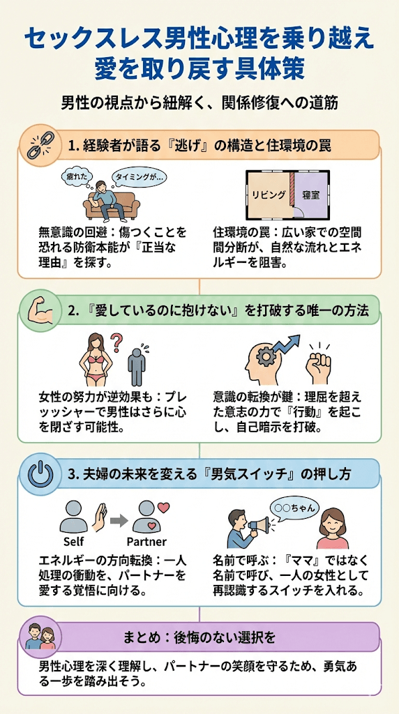 - まとめ:セックスレス男性心理を理解し、後悔のない選択を